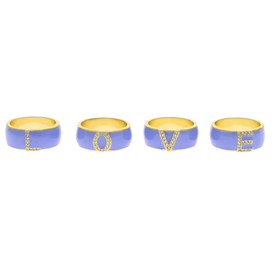 Hot sale colorful women's Initials A-Z letter finger rings for lady engagement band jewelry total initials 26 Alphabet set punk