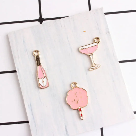 10pcs/pack 14*25mm Cotton Candy Charm Wine Bottle Glass Pendants Alloy Metal Enamel Charms for DIY Jewelry Making Sister Gift