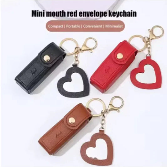 Custom Mini PU Leather Portable Keychain Lipstick Makeup Pouch Lip Balm Bag Keyring Creative Small Mirror Car Bag Hanging Gift