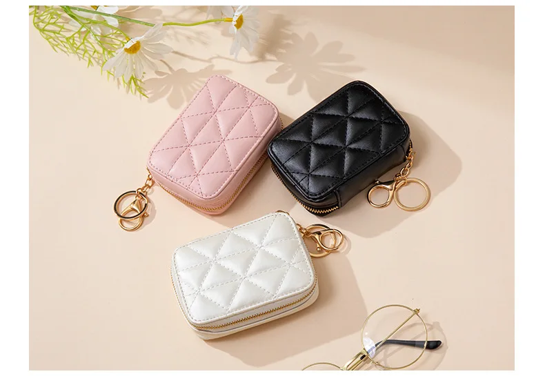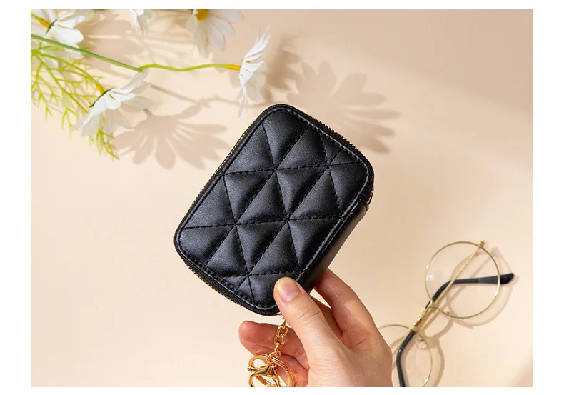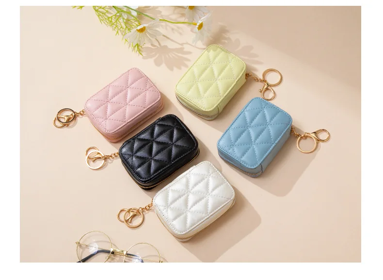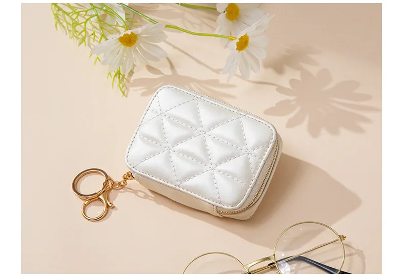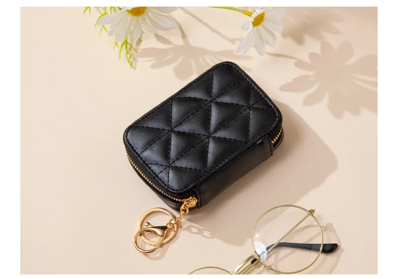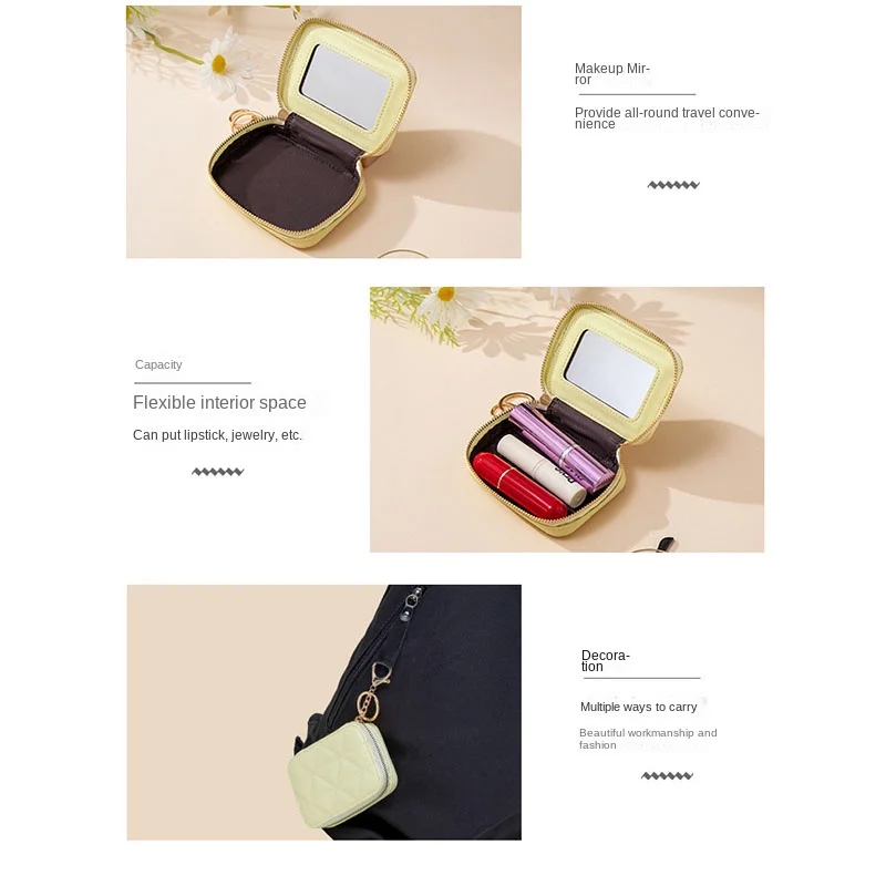 Lipstick Bag Genuine Leather Makeup Case Mini Purse Organizer Women Cosmetic Bag Mirror Lipstick Pocket Coin Wallet
