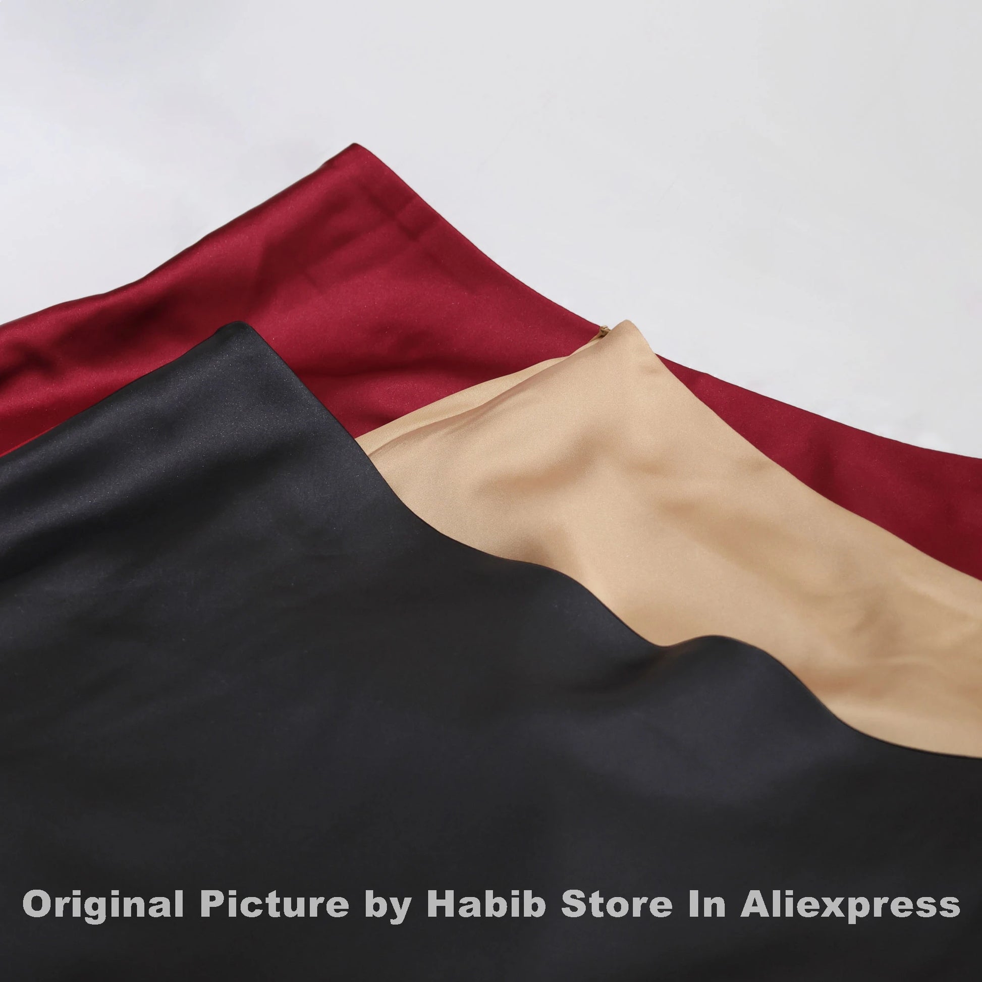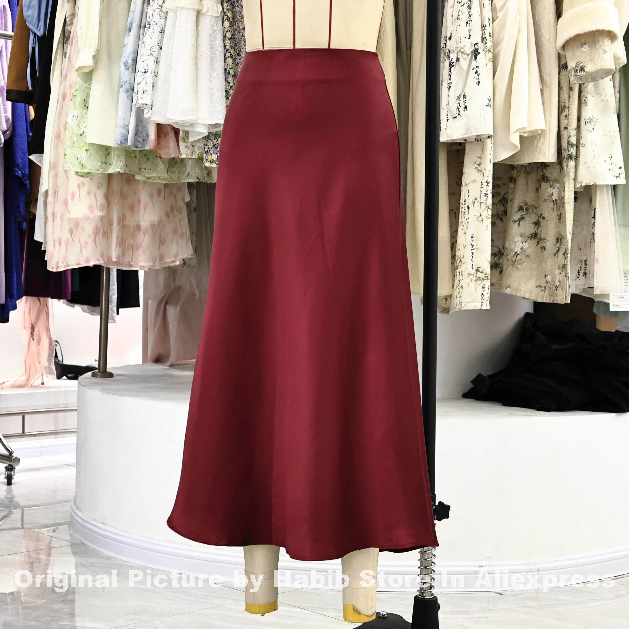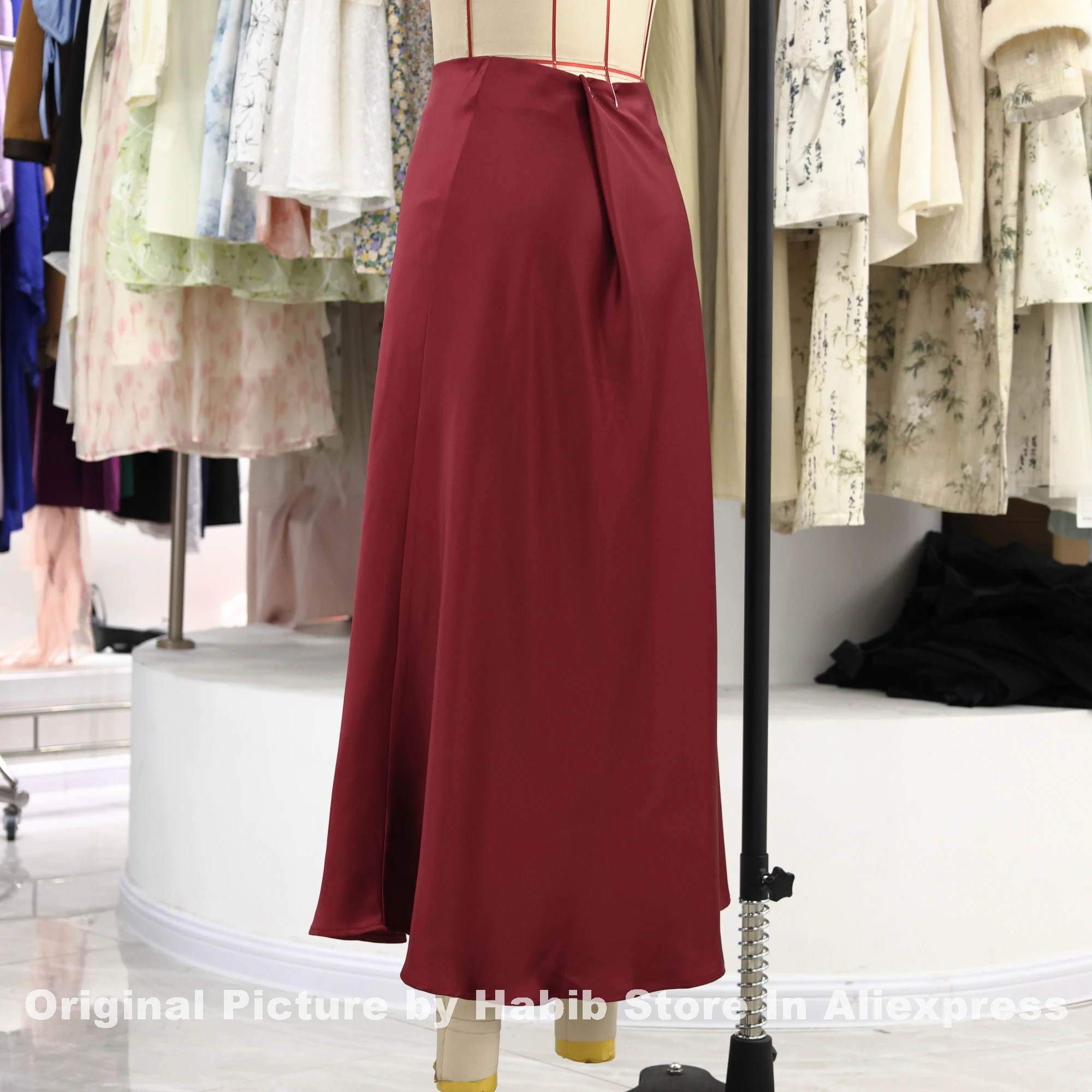 Women Satin Solid Pleated Midi Skirt Vintage Mid Elastic Waist Female Chic Lady Skirts Black Gold Red Satin Skort Beach A Line